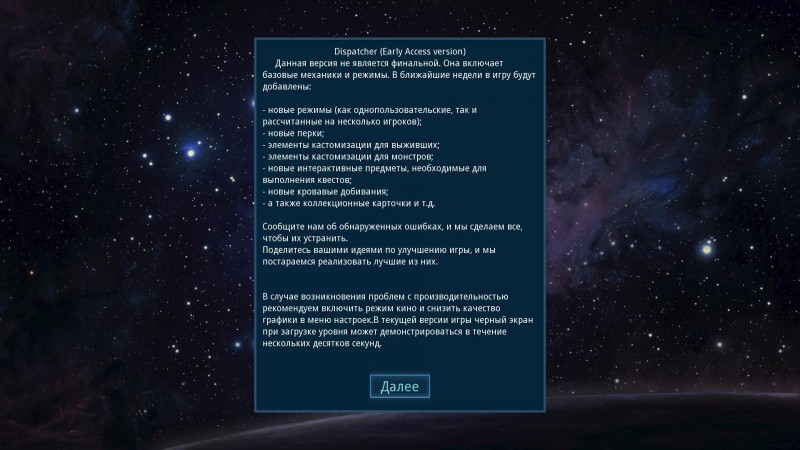 | Информация об игре Год выпуска: 2015 Жанр: Action (Survival horror) / 3D / 1st Person Разработчик: CivilSavages Издатель: CivilSavages Тип издания: RePack Язык интерфейса: Русский, Английский Язык озвучки: Отсутствует Таблетка: CODEX Системные требования: > Операционная система: Windows 7, Windows 8, Windows 8.1, Windows 10 > Процессор: Intel Core 2 Duo @ 2.4 Ghz / AMD Athlon 64 X2 5200+ > Оперативная память: 4 Гб > Видеокарта: nVidia GeForce GTX 470 / AMD Radeon HD 7850 > Звуковая карта: Звуковое устройство, совместимое с DirectX® 9.0с > Свободное место на жестком диске: 3.1 Гб Описание: «Dispatcher» — ролевая игра в жанре хоррор с видом от первого лица. События разворачиваются в недалеком будущем на комическом шаттле Диспетчер. В результате несчастного случая весь экипаж оказывается в ловушке — инопланетные монстры уже наступают. Выжившие подверглись заражению и стали представлять из себя не меньшую опасность. Был ли это несчастный случай? Отправляйтесь в центр событий, чтобы расследовать клубок интриг и выяснить, что же случилось на корабле. Только скрытное перемещение и исследование локаций поможет вам сохранить собственную жизнь. | |